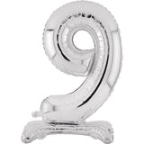 Number 9 Standing Foil Balloon - Silver - 76cm - Air Filled